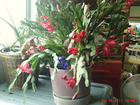 A blast from the past - the photo is my favorite Crab Cactus in it's blazing glory. It used to spend late spring to late fall outside, on the patio, under the table with my Jade plant in the semi-shade. It bloomed all winter when it came inside & often kept on blooming when it went back outside as well.